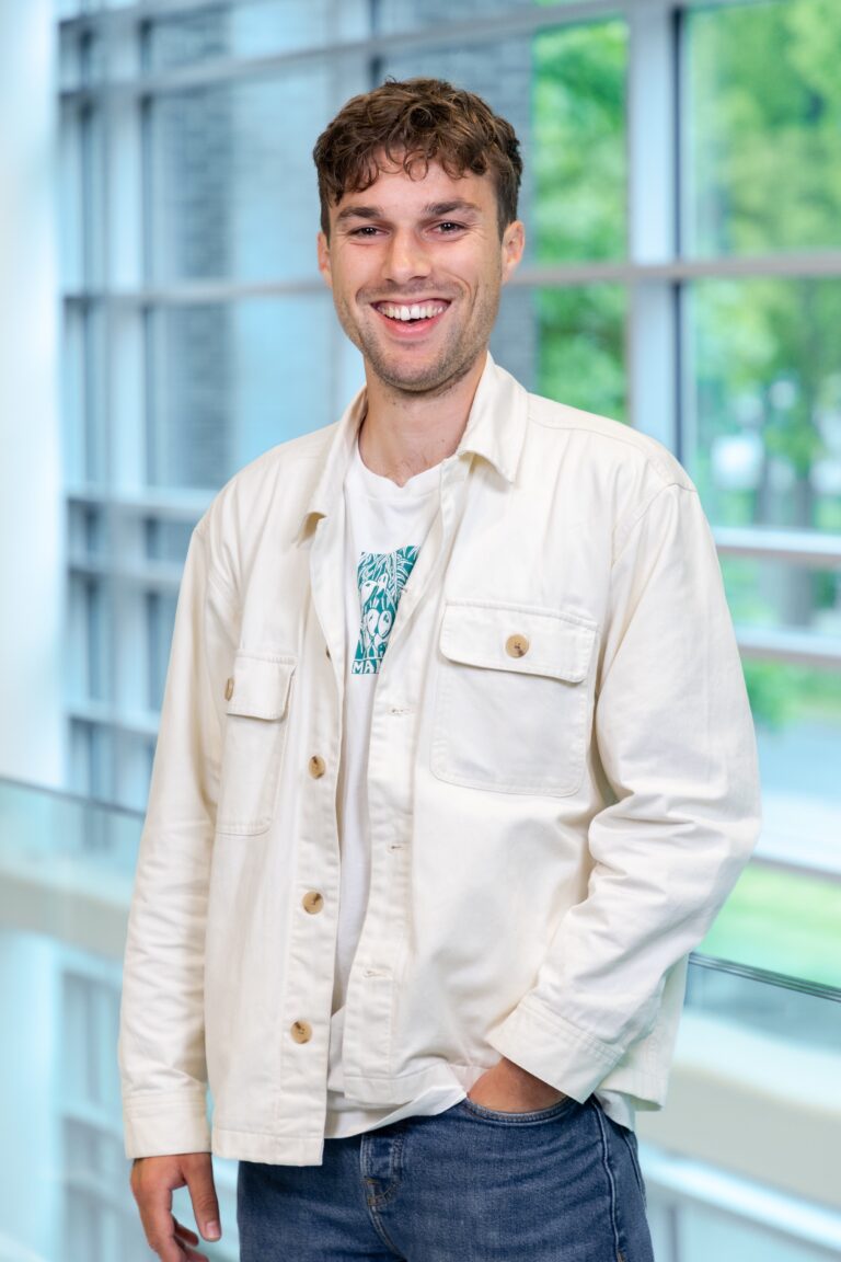 Thesis Cover Credit: Joost Wijnakker, Copyright: Hubrecht Institute 24 november 2025 Diervrij perspectief voor organoïdenkweek – Promotie Joost Wijnakker Terug naar nieuws Op 24 november 2025 verdedigde Joost Wijnakker met succes zijn proefschrift “Het Onderzoeken van Integrine Functie ter Bevordering van Gedefinieerde, Diervrije Organoidkweek” aan de Universiteit Utrecht. Zijn onderzoek vond plaats in de Clevers groep, onder begeleiding van Hans Clevers en Patricia Dankers (TU Eindhoven). Met zijn werk heeft Joost een belangrijke stap gezet richting volledig diervrije en gedefinieerde organoïdenkweek. Deze ontwikkeling is van groot belang voor zowel fundamenteel onderzoek als toekomstige klinische toepassingen. De noodzaak van diervrije organoïdenkweek Organoïden zijn mini-organen die in het laboratorium worden gekweekt uit menselijke stamcellen. Ze bieden onderzoekers de mogelijkheid om te onderzoeken hoe organen werken, hoe ziektes ontstaan en om nieuwe medicijnen te testen. Tot nu toe werden ze bijna altijd gekweekt met Matrigel, een gel die is gemaakt uit muizentumoren. Dat materiaal is duur, de samenstelling wisselt per batch en het is niet geschikt voor gebruik bij mensen. Daardoor liep de technologie lange tijd tegen grenzen aan. De sleutelrol van integrines “Om organoïden diervrij te kunnen kweken, moesten we eerst precies begrijpen welke signalen stamcellen nodig hebben om te groeien,” legt Joost uit. “Integrines bleken daarbij een heel belangrijk onderdeel.” Integrines zijn de receptoren waarmee cellen hun omgeving registreren. Samen met integrine-expert Timothy Springer en organoid-expert Wim de Lau werd slim gebruik gemaakt van bestaande antilichamen en konden zij precies bepalen welke integrines belangrijk zijn voor de groei van organoïden. Zo ontdekte zij samen dat vooral integrine β1 essentieel is voor de groei, de oriëntatie van de cellen en het overleven van organoïden. Dit inzicht vormde de basis voor zijn zoektocht naar een diervrij alternatief voor Matrigel. Een onverwachte oplossing: het bacteriële eiwit Invasin Die zoektocht leidde tot een verrassende ontdekking. Joost ontdekte dat een klein deel van het bacteriële eiwit Invasin meerdere integrine β1-receptoren tegelijk kan activeren. “Natuurlijke matrixeiwitten kunnen meestal maar één soort receptor aanspreken, maar Invasin werkt als een soort universele activator van meerdere integrines,” legt Joost uit. “Daarmee lijkt het op verschillende onderdelen van de extracellulaire matrix tegelijk.” In latere studies bleek dat Invasin zelfs sterker werkt dan sommige bestaande moleculen: een zogenoemde superagonist. De eerste resultaten van dit werk verschenen in 2024, toen Joost liet zien dat Invasin organoïden in 2D kan laten groeien op platte oppervlakken. Dit werd samengevat in een eerder nieuwsbericht van het Hubrecht Instituut. Van 2D naar 3D in een volledig synthetisch systeem Joost bouwde verder op deze ontdekking door Invasin te combineren met een volledig synthetische gel, de PIC-gel ontwikkeld door Professor Paul Kouwer. Dat maakte het mogelijk om organoïden ook in 3D te kweken, vergelijkbaar met hoe dat eerder in Matrigel gebeurde. Deze bevindingen zijn recentelijk beschreven in dit nieuwsbericht. Het bleek dat organoïden in de PIC–Invasin-gel goed groeien, hun structuur behouden en over langere tijd kunnen worden onderhouden. Joost: “Toen we zagen dat organoïden echt konden groeien op alleen Invasin, wisten we: dit kan de manier waarop we organoïden kweken veranderen.” Een technologie met toekomst Met Invasin wordt het mogelijk om organoïden volledig zonder Matrigel te kweken. Het systeem is volledig synthetisch en beter te standaardiseren, wat belangrijk is voor grootschalige experimenten en toekomstige toepassingen. De mogelijke impact van Joosts bevindingen is groot. “Ik hoop dat onderzoekers en bedrijven Invasin nu gaan testen,” zegt Joost. “De technologie is klaar om breder gebruikt te worden.” Joost blijft zich bezighouden met organoïden en vervolgt zijn carrière bij HUB Organoids, nu onderdeel van Merck. Maar eerst is het tijd om stil te staan bij zijn promotiesucces: “Je promoveert maar één keer,” zegt hij. “Dus ik ga het goed vieren!”